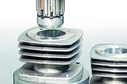 80 Jahren Präzisionsmaschinenbau und moderne Bearbeitungsverfahren gewähren die hohen KAESER-Qualitäten. So werden Bspw. alle Zylinder im aufwendigen Plateau-Honverfahren mit einem Kreuzschliff versehen, welcher die die Reibung des Kolbens im Zylinder reduziert und den Ölverbrauch senkt.